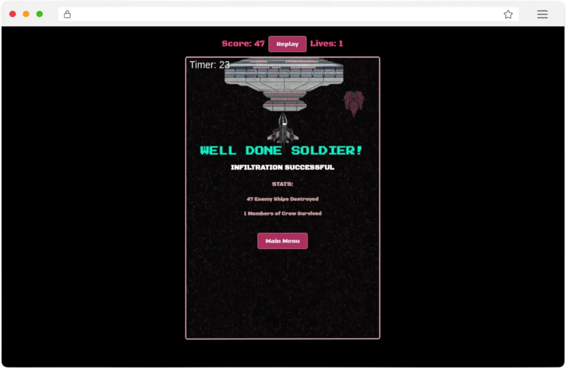 A space-themed game where players control the SH-141 Fighter Battleship, engaging in battles against light and heavy enemy battleships. The game offers a variety of challenges, requiring players to navigate and defeat enemy ships while avoiding collisions and achieving specific objectives.