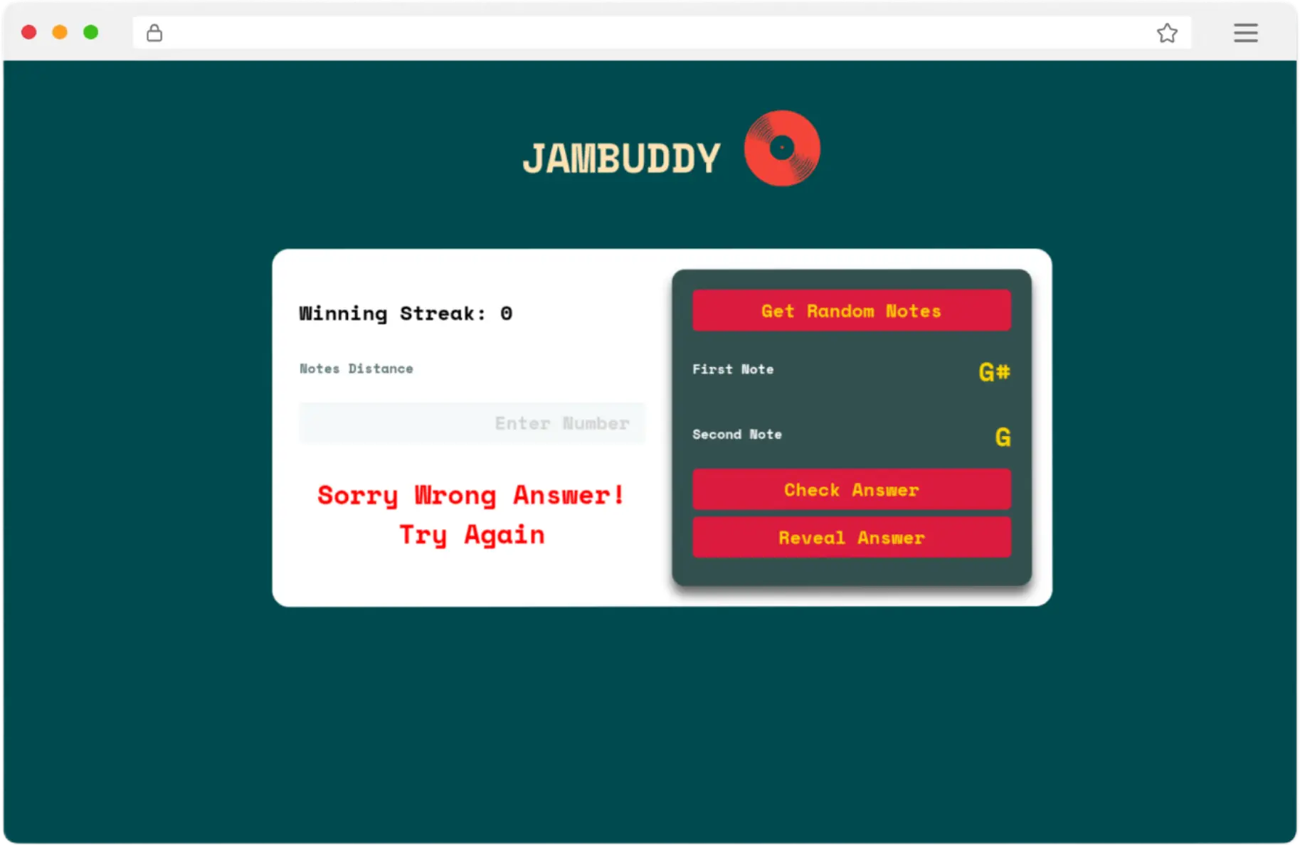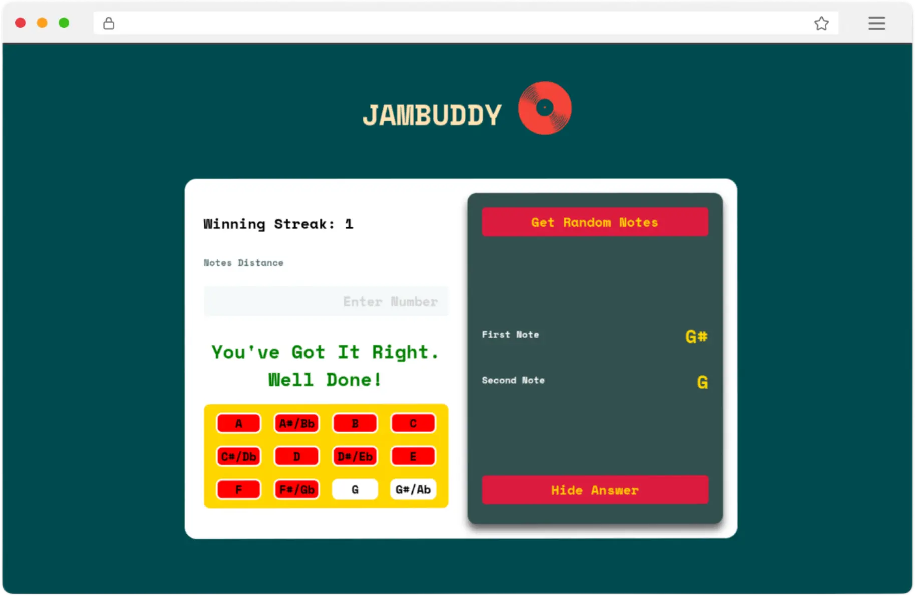 This interactive music theory game helps users practice interval recognition using the note circle. The app randomly selects two notes, and the user must calculate the number of semi-tones between them. Ideal for musicians, it reinforces theory knowledge in a simple, engaging quiz format.