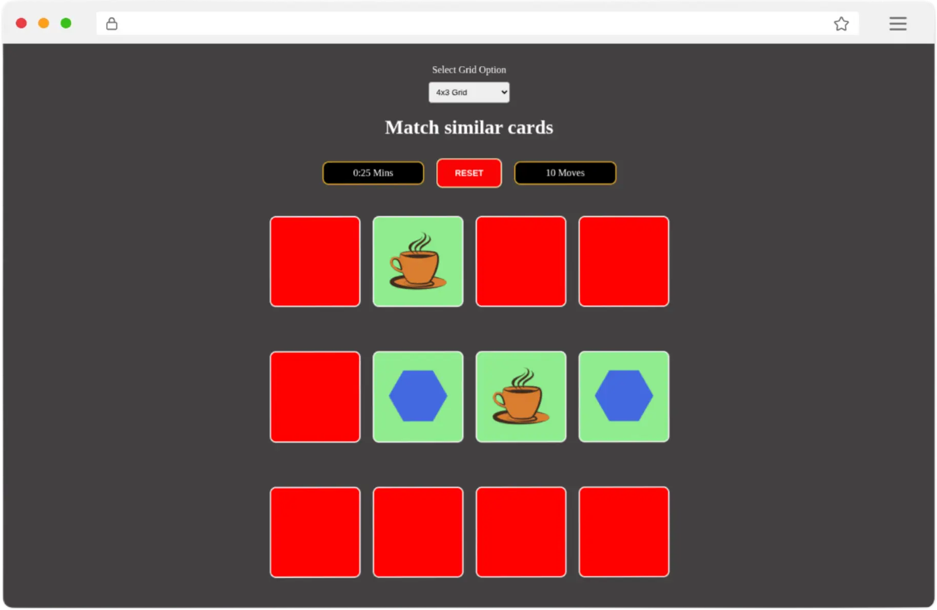 A fun and interactive memory card game built with React. Players flip over emoji cards two at a time to find matching pairs, with animated feedback for matches and mismatches. The game includes dynamic state management, reset functionality, and a celebratory modal upon completion.