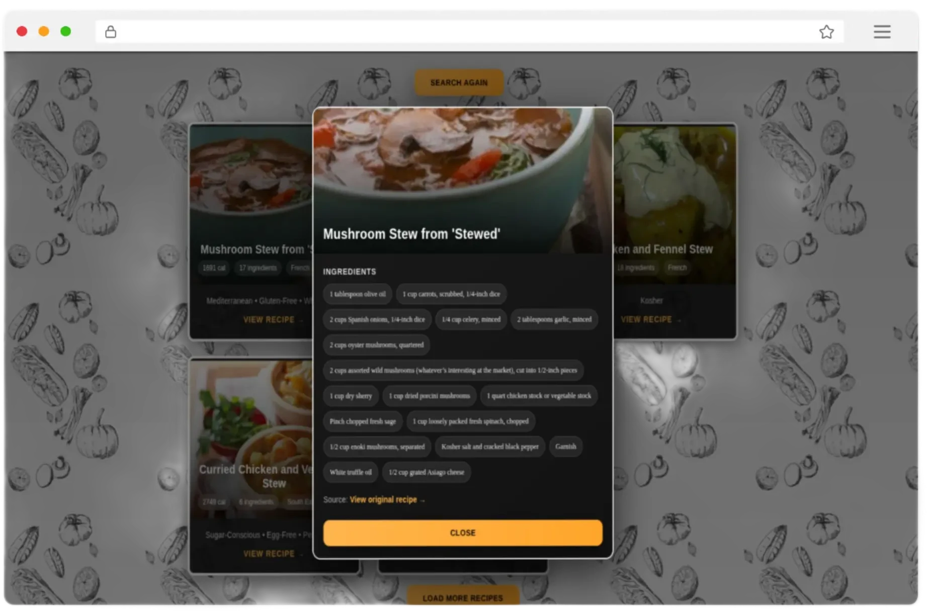 - ✓Interactive recipe popups with ingredients and source links